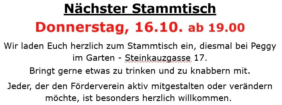 Kommt super gerne vorbei und fühlt Euch ganz herzlich eingeladen den Förderverein ein wenig besser kennenzulernen. Wir brauchen Euch. Also lasst und einen schönen gemeinsamen Abend haben.
